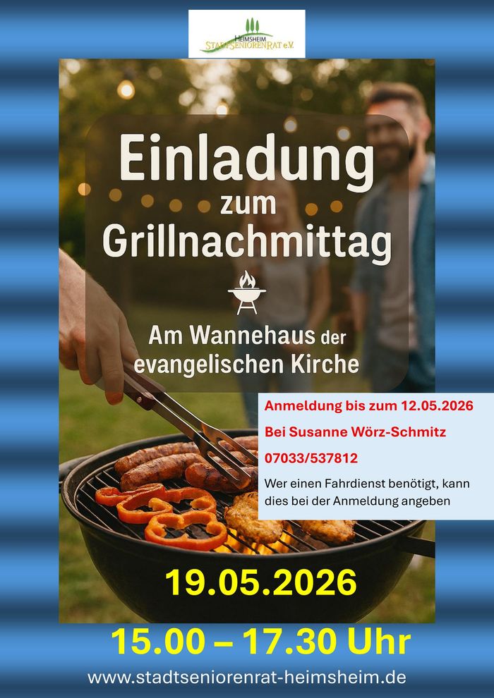 Dienstag, 19.05.2026 laden wir ein zum Grillnachmittag am Wannehaus