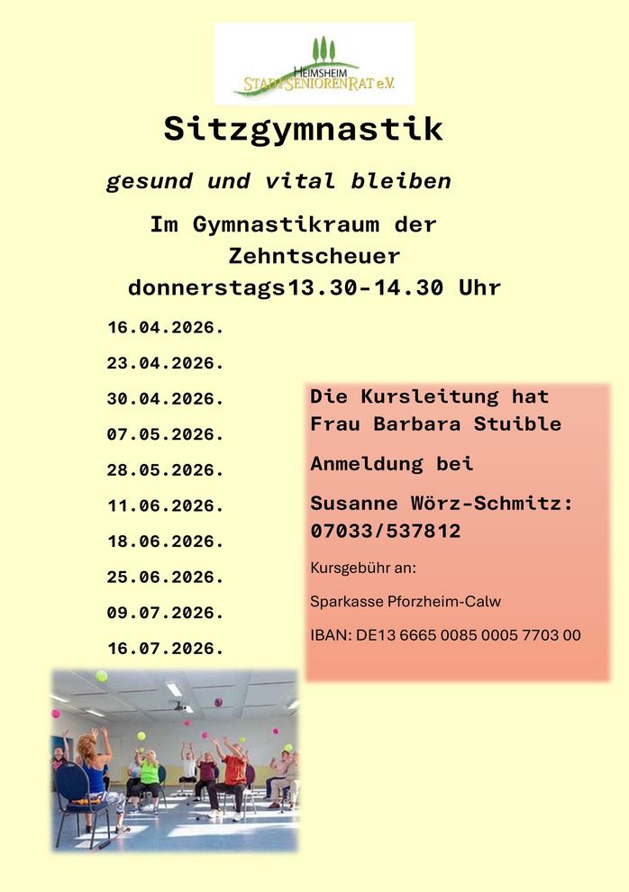 bieten wir 10 mal Sitzgymnastik in der Cafeteria der Zehntscheuer an.