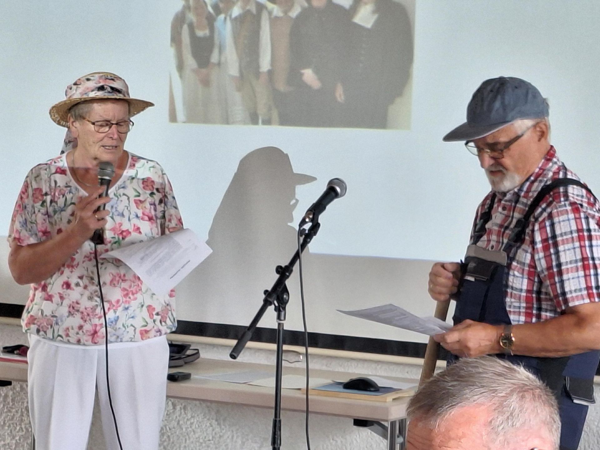 Renate Riek und Hans Riek haben einen Sketch über Kartoffeln aufgeführt. Ein Zwiegespräch zwischen einer Mitarbeiterin aus dem Berliner Landwirtschaftsministerin und einem schwäbischen Kartoffelbauer, das viele Lacher ausgelöst hat.