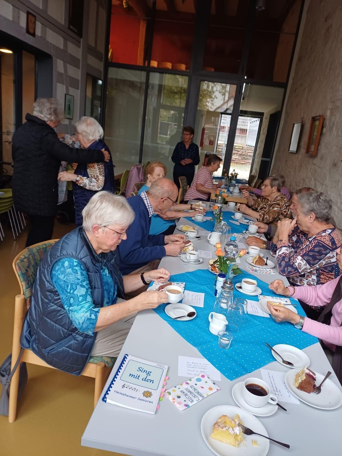 Es gab wie immer leckeren Kuchen, Kaffee oder Tee! Herr Käser hat uns musikalisch begleitet und es wurde kräftig mitgesungen.