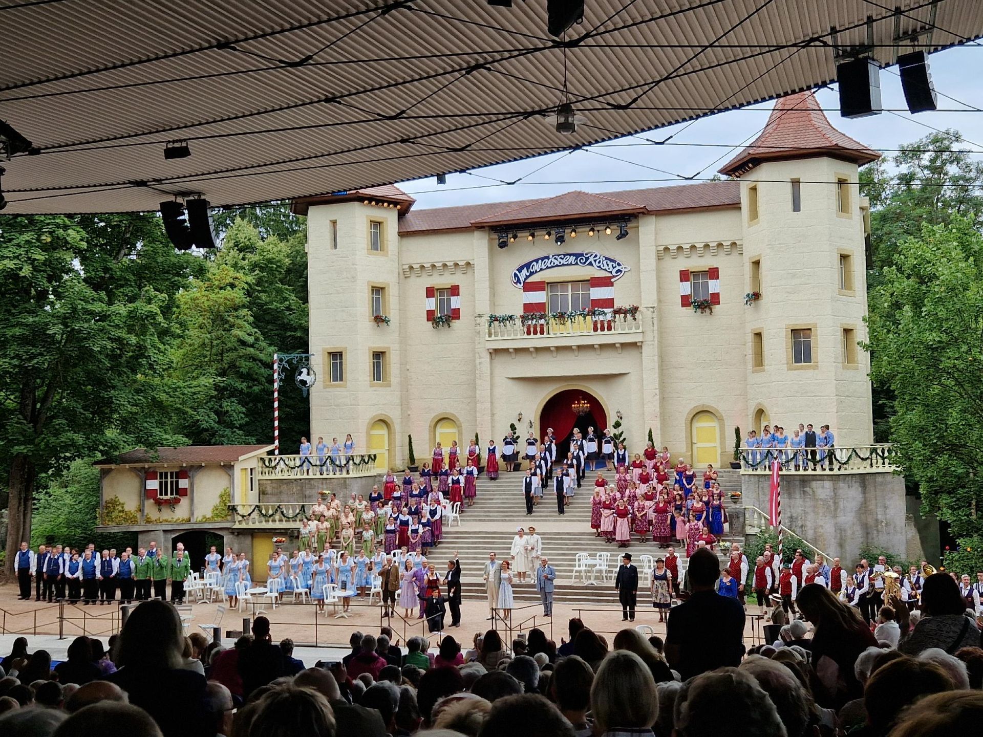 Am Sonntag, den 3. August, machten sich 28 gut gelaunte Seniorinnen und Senioren (und welche, die sich zu dieser Altersgruppe noch nicht zählten!) auf den Weg zur Freilichtbühne Ötigheim, um sich das schwungvolle Singspiel „Im weißen Rössl“ anzuschauen.